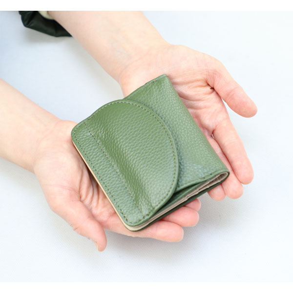 アイザック・バレンチノ訳アリ牛革コンパクト財布 オリーブ