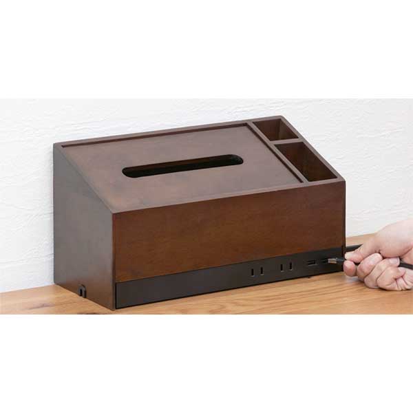 ティッシュ箱や小物を収納しながら電源を確保。